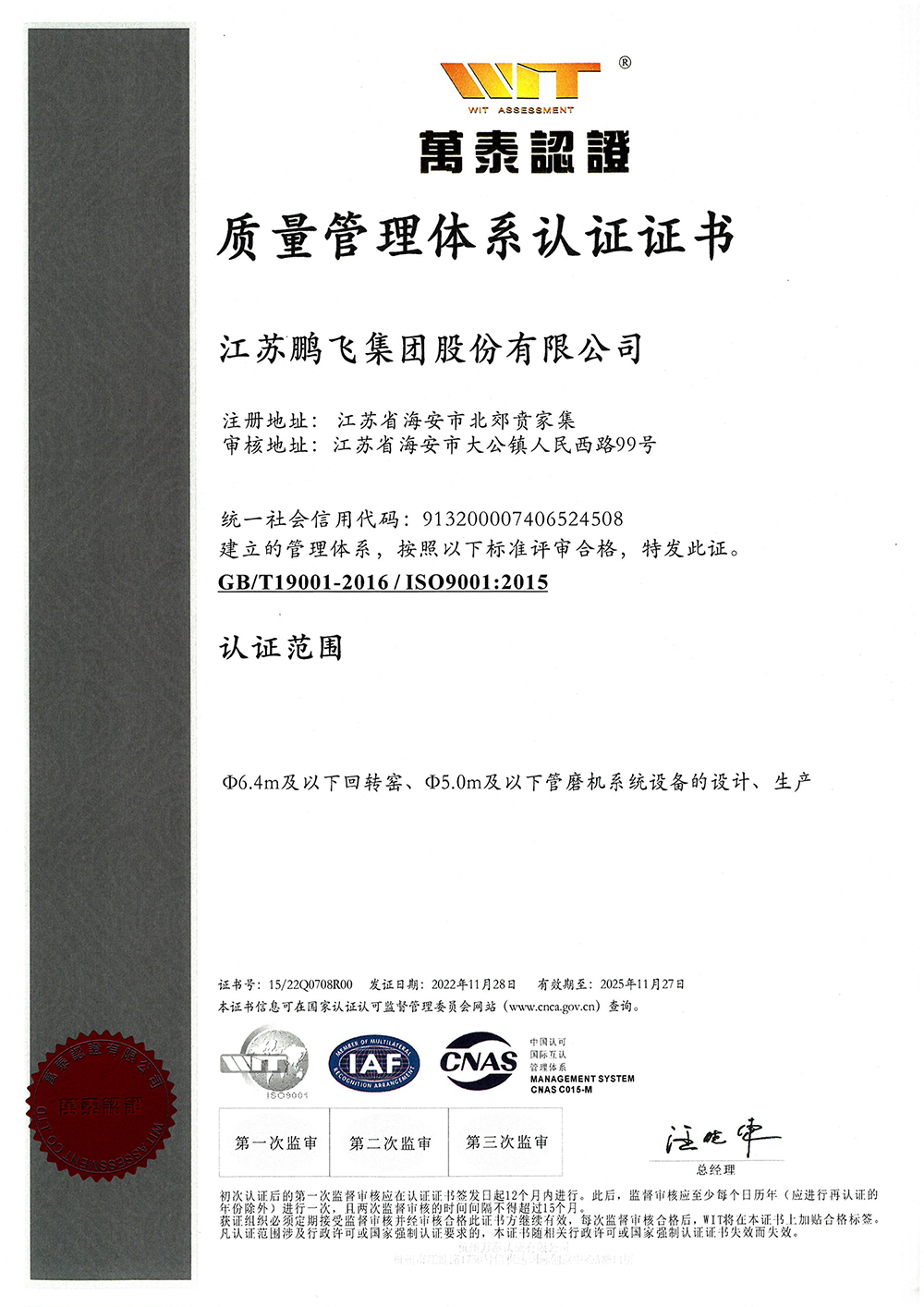 (2022年11月)質(zhì)量管理體系認證證書