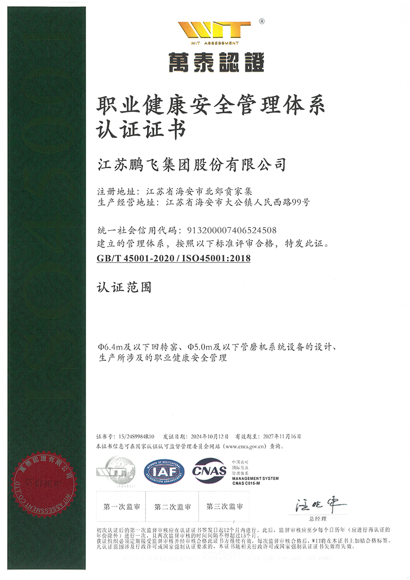 (2024年10月)職業(yè)健康安全管理體系認證證書