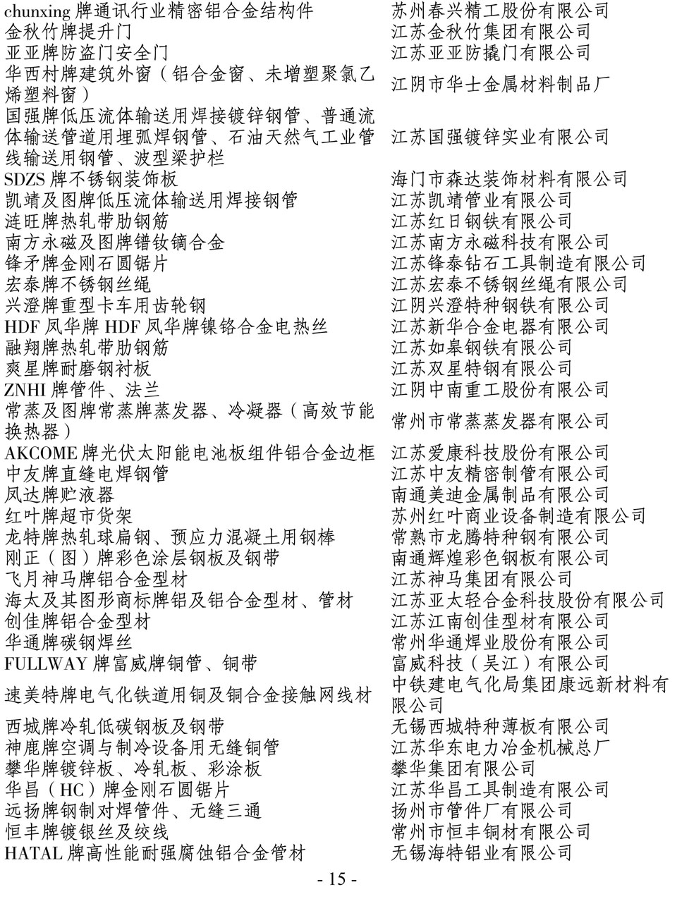 日前,江蘇省名牌戰(zhàn)略推進委員會公布了2014年江蘇省名牌產(chǎn)品名單,“