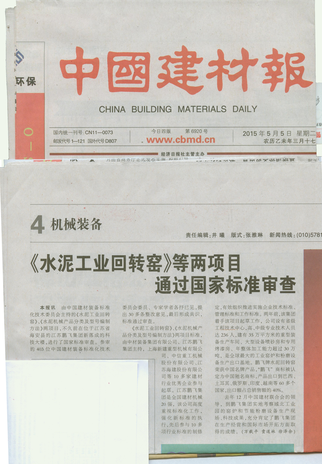 水泥工業(yè)回轉(zhuǎn)窯等兩項(xiàng)目通過(guò)國(guó)家標(biāo)準(zhǔn)審查