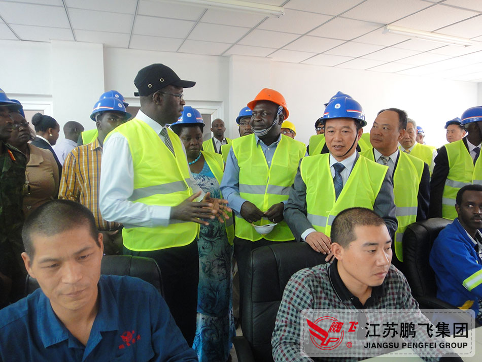 江蘇鵬飛集團(tuán)董事長、總經(jīng)理王家安陪同盧旺達(dá)總理Mr ANASTASE MUREKEEI參觀工程現(xiàn)場