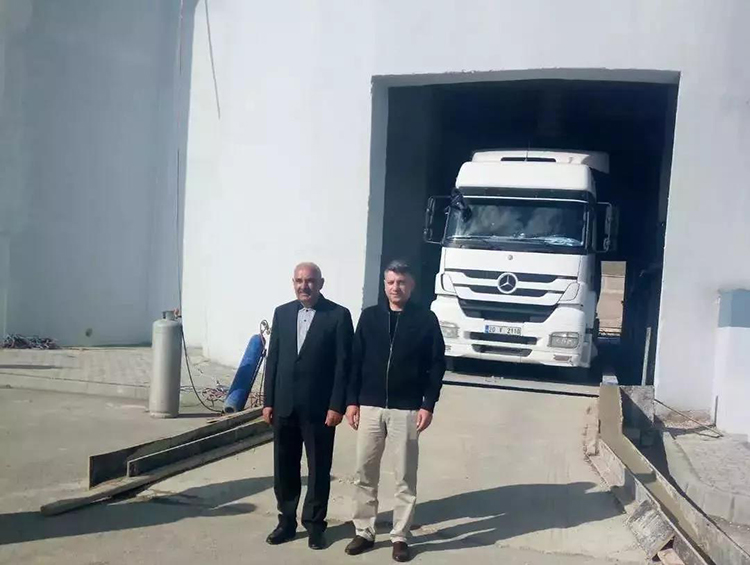 土耳其水泥廠生產(chǎn)的第一車(chē)水泥出庫(kù)