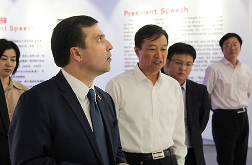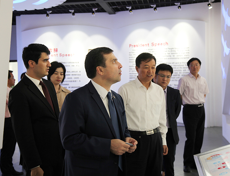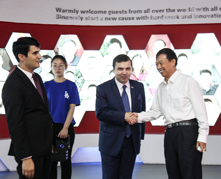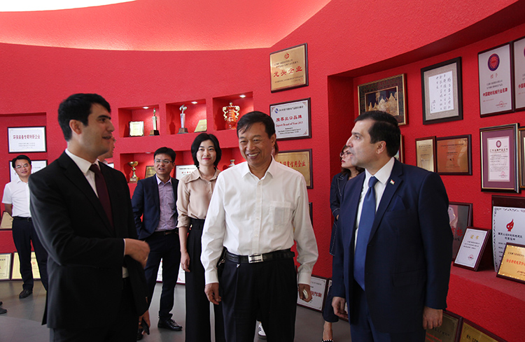 秋風送爽,丹桂飄香。24日下午鵬飛集團迎來了尊貴的客人——塔吉克斯坦駐中國大使達夫拉·特佐達先生一行。大使先生在海安市宣傳部領導的陪同下,參觀考察鵬飛集團。