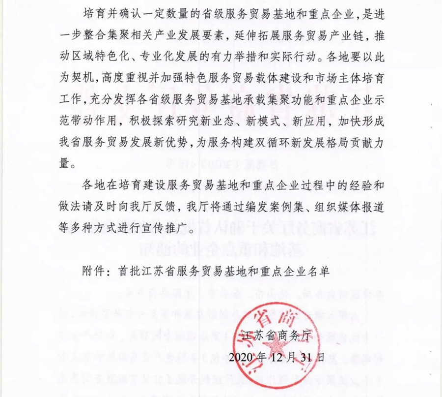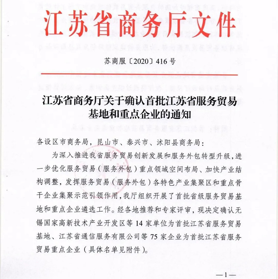 為深入推進江蘇省服務(wù)貿(mào)易創(chuàng)新發(fā)展和服務(wù)外包轉(zhuǎn)型升級,進一步優(yōu)化服務(wù)貿(mào)易(服務(wù)外包)重點領(lǐng)域空間布局、加快產(chǎn)業(yè)結(jié)構(gòu)調(diào)整,發(fā)揮服務(wù)貿(mào)易(服務(wù)外包)各特色產(chǎn)業(yè)集聚區(qū)和重點骨干企業(yè)集聚示范引領(lǐng)作用,江蘇省商務(wù)廳組織開展了首批省級服務(wù)貿(mào)易基地和重點企業(yè)遴選工作,江蘇鵬飛集團股份有限公司獲評省首批服務(wù)貿(mào)易重點企業(yè)。