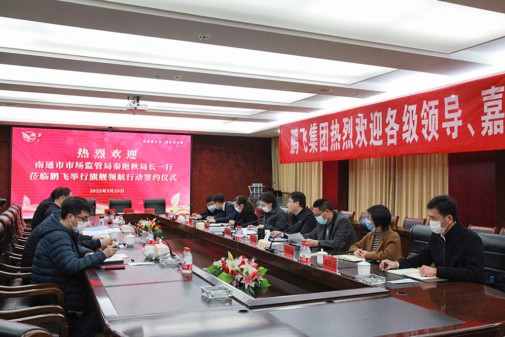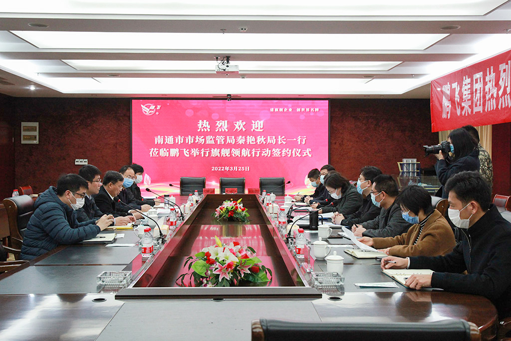 3月25日,江蘇鵬飛集團與南通市市場監(jiān)管局、海安市市場監(jiān)管局共同簽署“旗艦領航”行動三年共建協(xié)議。