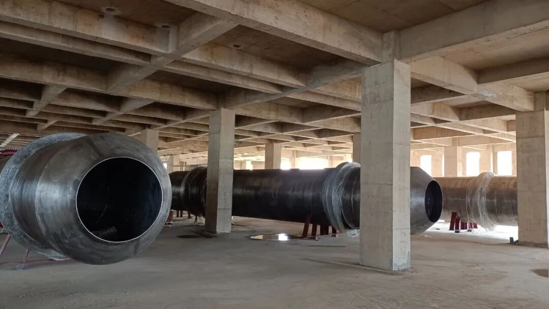 #食品生產(chǎn)樓正式進(jìn)入鮮食營養(yǎng)餐生產(chǎn)線安裝階段。這一世界先進(jìn)、全球規(guī)模較大的回轉(zhuǎn)窯炒菜設(shè)備,由世紀(jì)新峰科技集團首席科學(xué)家諸葛文達(dá)親自設(shè)計、