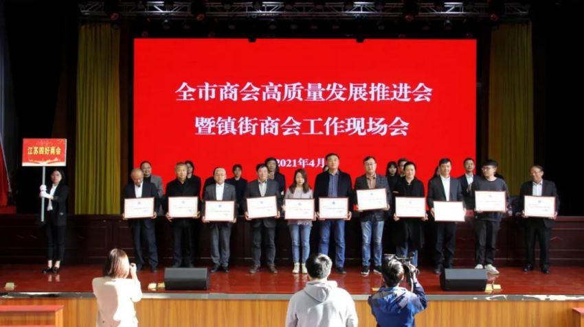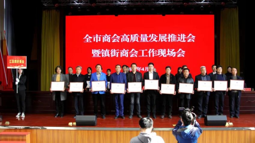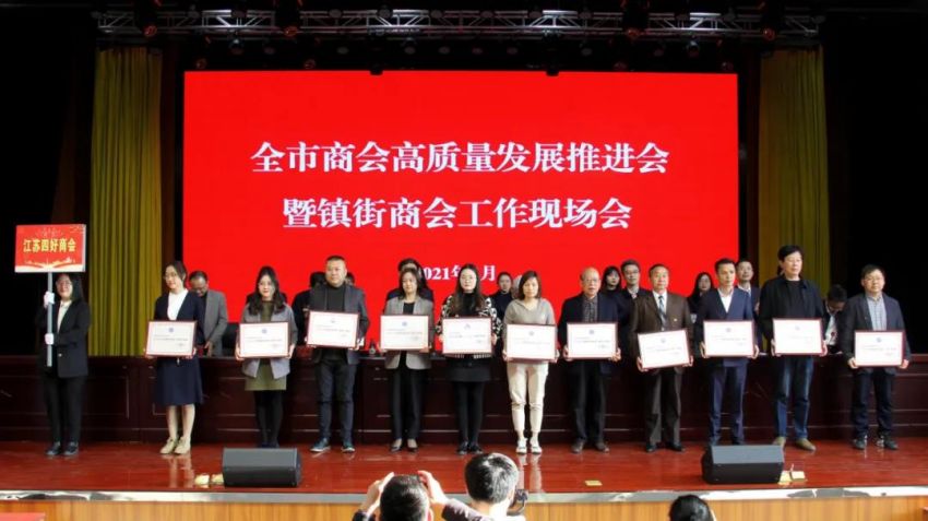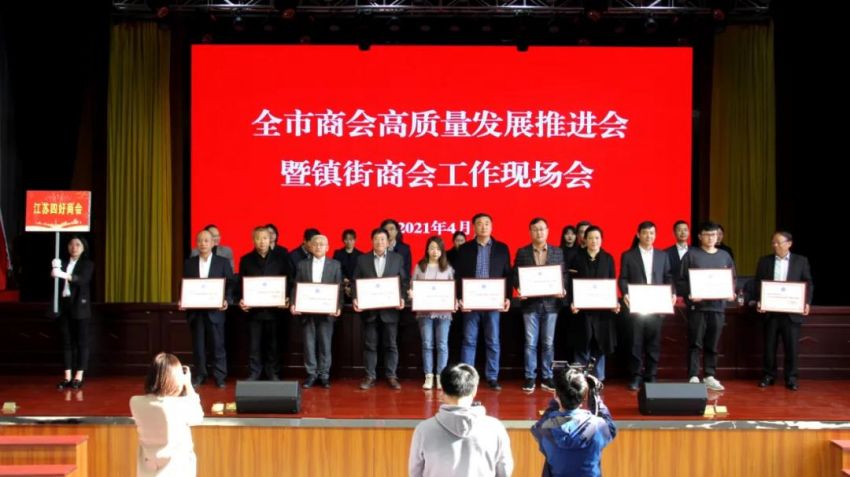 為學(xué)習(xí)貫徹中央、省商會工作會議精神,加快推進(jìn)全市商會基層組織建設(shè),推進(jìn)商會組織高質(zhì)量發(fā)展。4月19日下午,南通市工商聯(lián)(總商會)在我鎮(zhèn)隆重召開“全市商會高質(zhì)量發(fā)展推進(jìn)會暨鎮(zhèn)街商會工作現(xiàn)場會”。南通市政府副市長、一級巡視員趙聞斌,江蘇省工商聯(lián)黨組成員、副主席李曉林,南通市委統(tǒng)戰(zhàn)部副部長、市工商聯(lián)黨組書記王虎,海安市委常委、組織部長、統(tǒng)戰(zhàn)部長張明星,南通市工商聯(lián)黨組成員、副主席羅加宏,海安市政協(xié)副主席、工商聯(lián)主席、總商會會長蔡祝平,大公鎮(zhèn)黨委書記金山存,黨委副書記、鎮(zhèn)長魯競等參加活動。出席會議的還有省工商聯(lián)、市民政局相關(guān)處室領(lǐng)導(dǎo),各縣(市)區(qū)委統(tǒng)戰(zhàn)部分管副部長、工商聯(lián)主要負(fù)責(zé)人及分管領(lǐng)導(dǎo),全市各鎮(zhèn)街(園區(qū))統(tǒng)戰(zhàn)委員,商會會長代表,受表彰的全國抗疫先進(jìn)典型,全國、省、市四好商會,榮獲全市商會十大工作品牌的商會,商會十佳會長,十佳秘書長,部分市直商(協(xié))會主要負(fù)責(zé)人,以及市工商聯(lián)相關(guān)部室人員共計250余人。