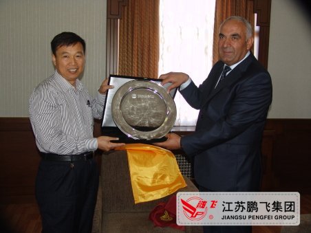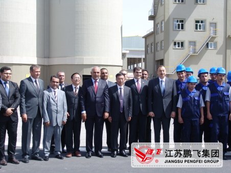 2012年5月30日,江蘇鵬飛集團(tuán)董事長王家安先生應(yīng)阿塞拜疆GEMIKAYA GROUP業(yè)主的邀請,參加了水泥廠投產(chǎn)一年的慶典活動,阿塞拜疆總統(tǒng)及NAXCIVAN總統(tǒng)親自參加水泥廠慶典活動,總統(tǒng)對鵬飛集團(tuán)的工程項目建設(shè)給予了高度評價,總統(tǒng)先生并與鵬飛集團(tuán)董事長王家安先生合影留念。阿塞拜疆電視臺、NAXCIVAN電視臺及阿各大新聞媒體及時報道總統(tǒng)出席GEMIKAYA GROUP水泥廠投產(chǎn)一年的慶典活動情況。
