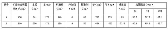 由表6數(shù)據(jù)可以看出:在含有礦渣配比20%的425礦渣水泥中摻入磨細(xì)礦渣微粉取代等量水泥后,水泥的早、后期強(qiáng)度非但沒有降低,反而有顯著的提高,充分說明磨細(xì)礦渣微粉具有優(yōu)良的潛在水硬活性,在水泥生產(chǎn)過程中對(duì)改善產(chǎn)品的物理力學(xué)性能具有重要意義。近年來,磨細(xì)礦渣微粉作為高活性礦物摻合料,已廣泛應(yīng)用于高性能、高強(qiáng)混凝土,并對(duì)其技術(shù)機(jī)理的研究逐步微觀化、系統(tǒng)化、深入化。不同比表面積磨細(xì)礦渣微粉應(yīng)用于混凝土中的試驗(yàn)數(shù)據(jù)見表7: