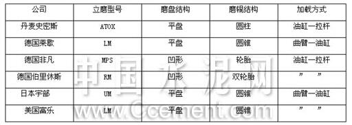 就當(dāng)前而言,立磨、輥壓機(jī)、筒輥磨三種料床粉磨設(shè)備都可以用于水泥及礦渣微粉的終粉磨。現(xiàn)以立磨為例,世界各知名公司的立磨都有其自主知識(shí)產(chǎn)權(quán),磨機(jī)內(nèi)部結(jié)構(gòu)不盡相同、各有千秋。國外立磨結(jié)構(gòu)形式見表2: