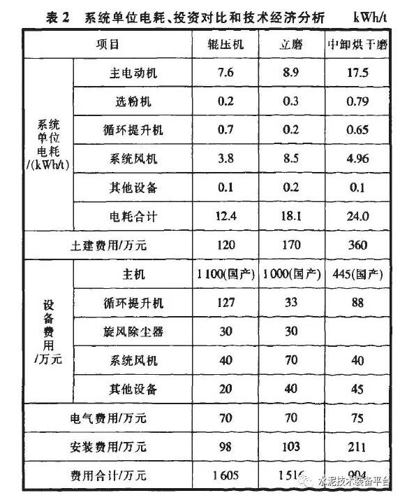 2 3種生料終粉磨系統(tǒng)的綜合對(duì)比