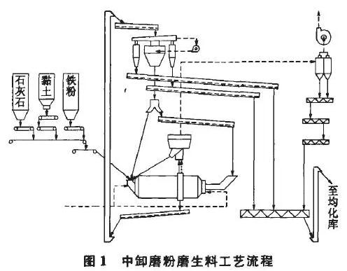 中卸烘干磨終粉磨生料工藝流程圖見(jiàn)圖1.