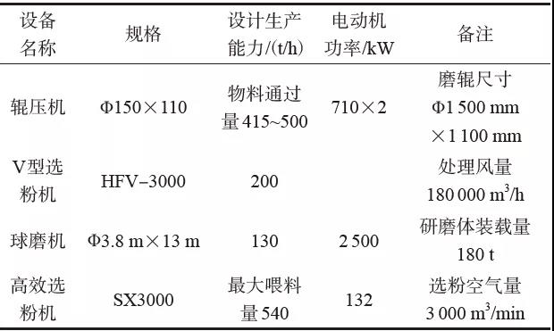 1 試驗(yàn)粉磨系統(tǒng)基本情況主要設(shè)備配置及性能見(jiàn)表1,物料配比及細(xì)度指標(biāo)見(jiàn)表2。