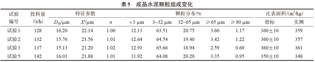 4.2 成品水泥顆粒組成變化