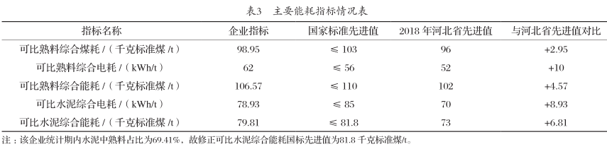 主要能耗指標(biāo)情況具體如表3所示。