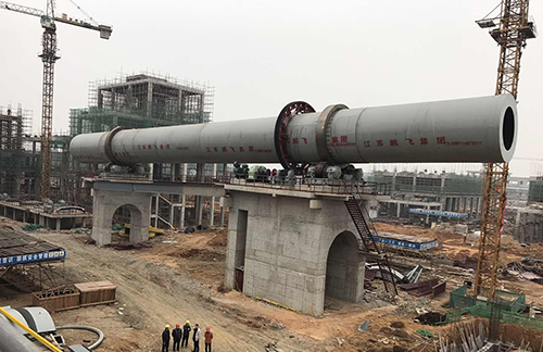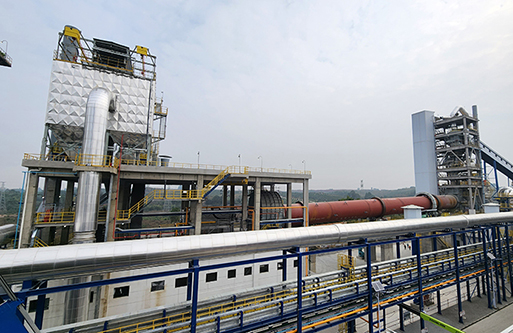 轉(zhuǎn)化焙燒:鋰輝石精礦從精礦庫(kù)人工送至斗式提升機(jī)提升至精礦倉(cāng),再經(jīng)圓盤(pán)給料機(jī)和螺旋給料機(jī)加入碳酸鋰回轉(zhuǎn)窯窯尾,利用窯尾預(yù)熱段高溫氣體干燥精礦,精礦在煅燒段約1200℃左右的溫度下進(jìn)行晶型轉(zhuǎn)化焙燒,由α型(單斜晶系,密度3150kg/m3)轉(zhuǎn)化為β型鋰輝石(四方晶系,密度2400kg/m3,即焙料),轉(zhuǎn)化率約98%。